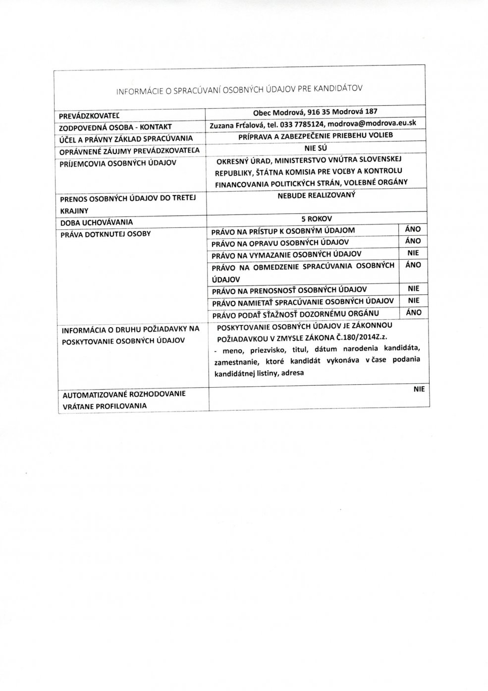 Informácie o osobných údajov pre kandidátov