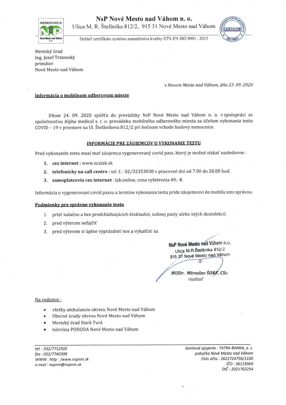 Informácia o mobilnom odberovom mieste